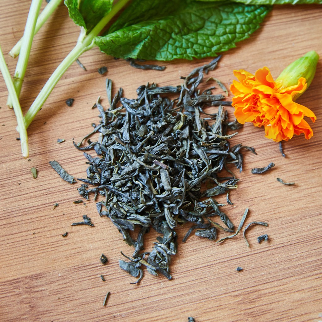 - Put Chinese gunpowder tea in tea pot and pour in 1 cup boiling water.