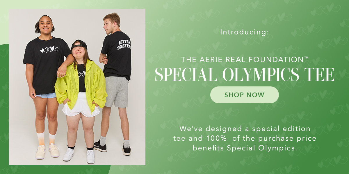 We’re excited to announce that, for our seventh year, we’re teaming up with Special Olympics through a $100k Aerie Real Foundation Signature Grant. Special Olympics is a non-profit that provides year-round sports training and athletic competition for children and adults with intellectual disabilities.