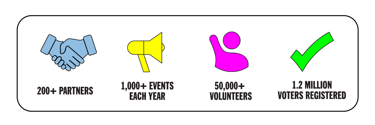 HeadCount envisions a future where civic participation is ingrained in our culture and high voter turnout is the norm, regardless of the political climate. Most of all, they believe elections should be fair, accessible and trustworthy for all voters.