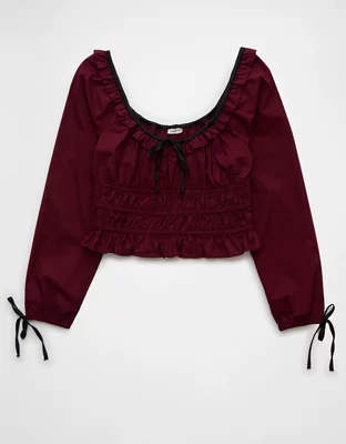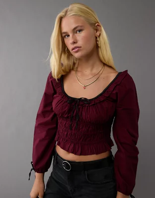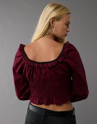 AE Long-Sleeve Ruched Poplin Blouse