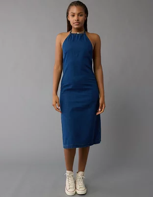 AE Denim Halter Shift Midi Dress