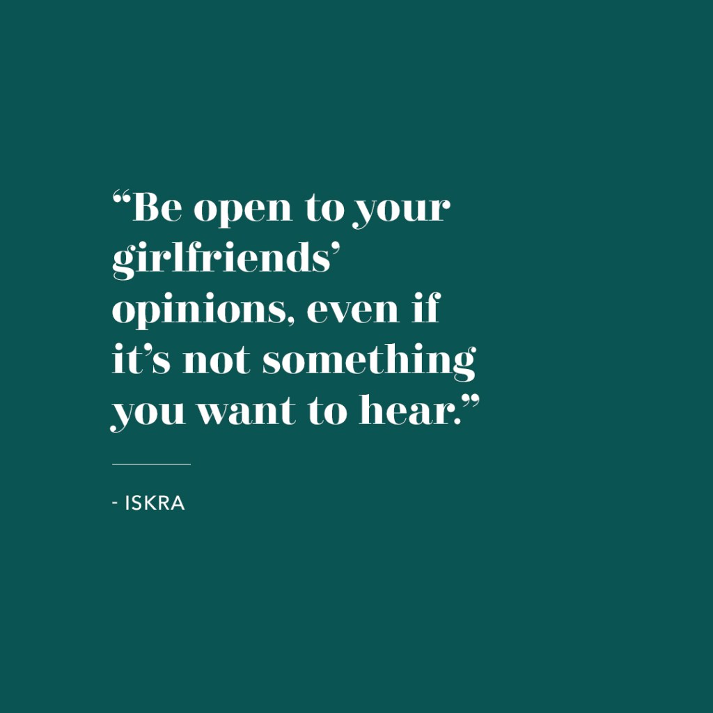 “You’re definitely going to need to talk to your girlfriends about some things that you can’t talk to your partner about. There’s a balance there.”