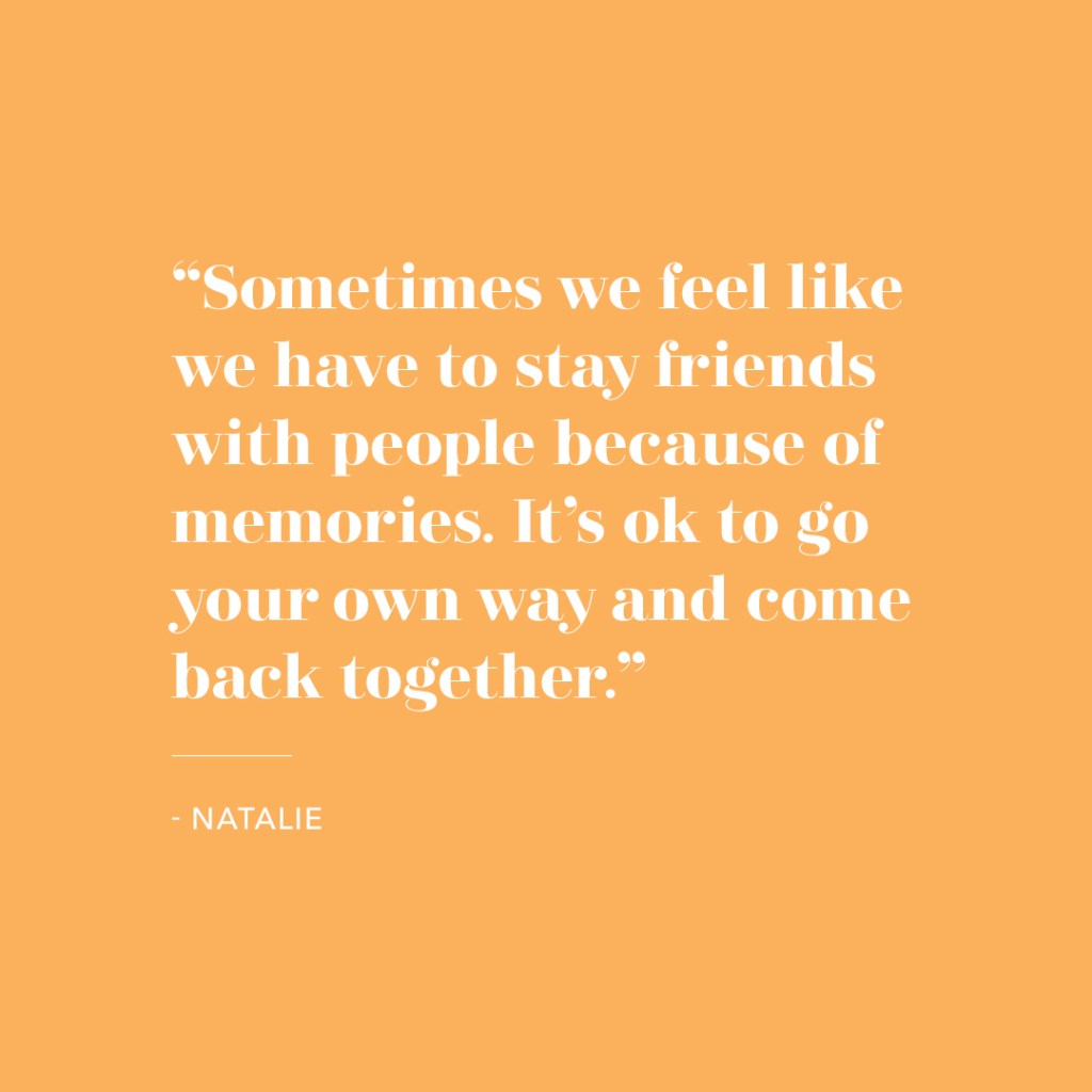 “When some people get in a relationship, they want to be with that person all the time & it can be really hard to confront your friend [about it]. Honesty is very important. We’re all trying to figure out how to be the best friends.”