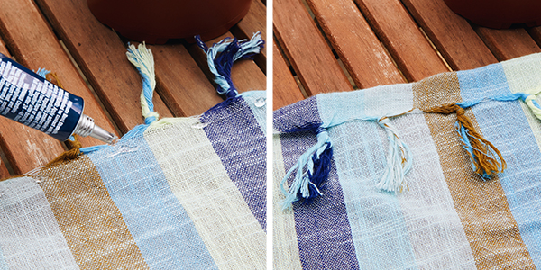 4. Once you’ve cut your fabric, create a clean edge by placing a line of fabric glue along the top of your fabric and folding it over once.