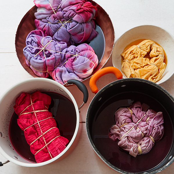 1. Soak the clothes you’re going to tie-dye in hot water while you prepare the dye.