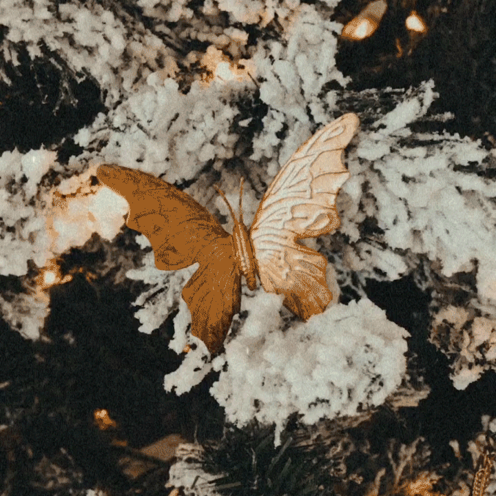 Jenna, who describes herself as a “big thrifter,” explains that nearly all the items on her tree are either from thrift or vintage stores. The gold butterflies, some of the favorite pieces that she’s found this season, help reflect the lights throughout her tree while her handmade salt dough ornaments can double as creative gifts! Jenna has also used her arts and crafts skills to get nifty with her wrapping paper, explaining that all of it features handwritten text for a personalized touch (from a local small business, @letterhouseco!).