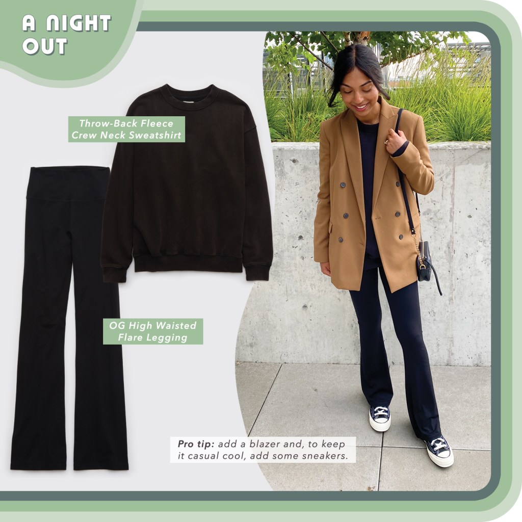 Thankfully, Aerie and OFFLINE’s new arrivals were designed with couch-to-coffee-date in mind. If you’re wondering how to wear your leggings and style other cozy pieces in real life, check out my three loungewear outfit ideas below for a little style inspo.