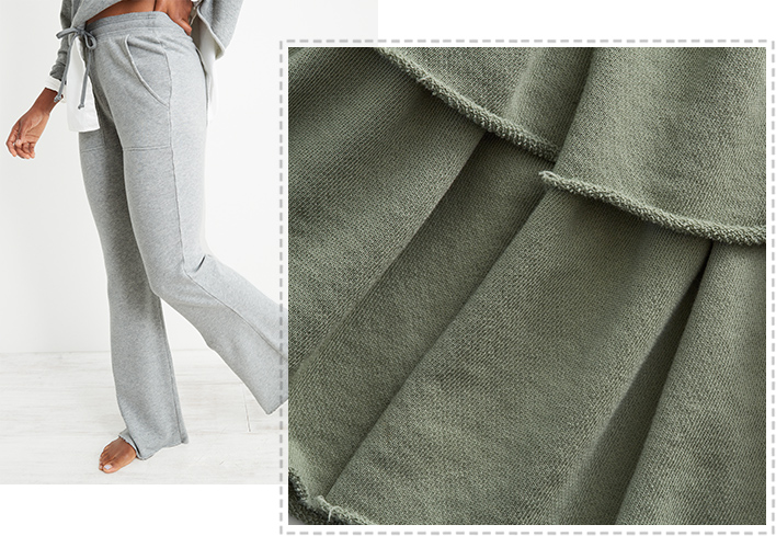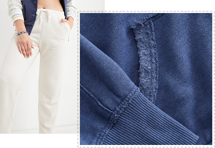 That Saturday morning feeling: but make it all week long. Real Good Weekend is a lightweight, terry fleece made for warmer days. With an easy look and a dry hand feel, Weekend makes the best easy layer over all your Aerie tees and tanks. The Weekend is Real Good: made with our planet in mind!