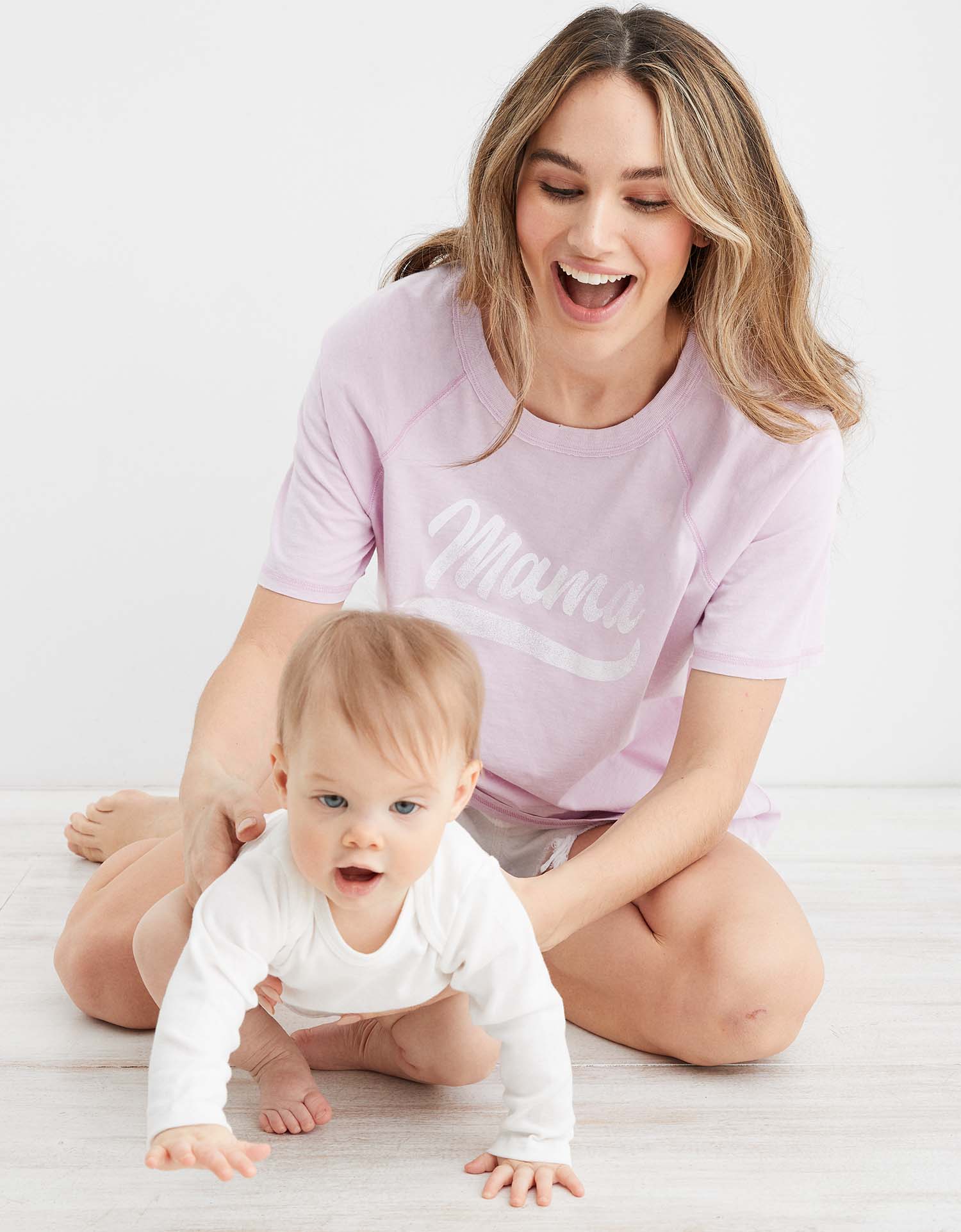 Mama by Aerie™ is our first collection of tops and bras designed for new moms and moms-to-be. Our Aerie fam told us we needed it – and we agreed. So, after tons of research, wear tests, and listening to feedback from our Aerie fam, we finally landed on our comfiest-ever-fits for mamas who are pregnant, nursing or just want something that feels great while they’re keeping it REAL as a mom.