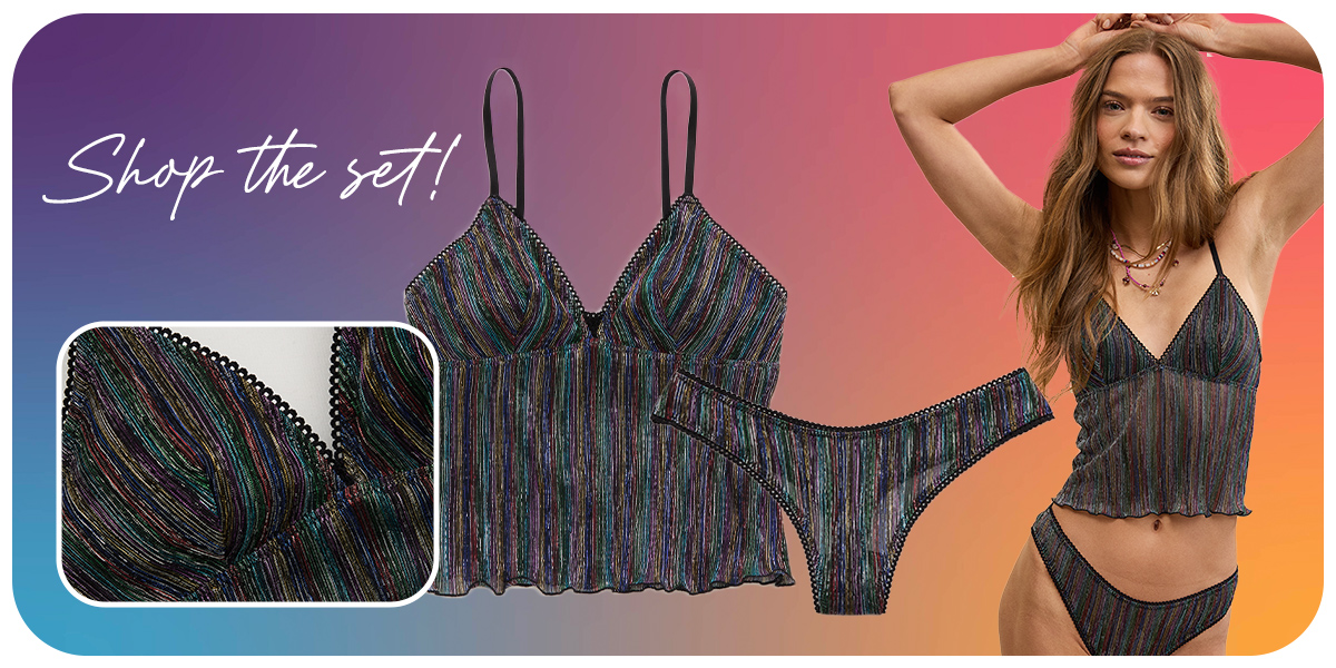 This year, we designed the Show Off Pride Mesh Bra Top and Superchill Cotton Pride Thong Underwear to celebrate Pride Month, and 100% of the purchase price of both items will go to It Gets Better. Shop here on aerie.com!