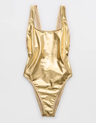 Aerie Metallic Birthday Scoop Cheekiest One Piece Swimsuit