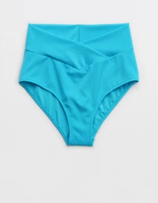Aerie Shine Pique Crossover High Waisted Bikini Bottom