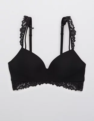 Aerie Real Happy Wireless Push Up Bluegrass Lace Bra
