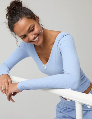 OFFLINE By Aerie Real Me XTRA Rib Open V-Neck T-Shirt