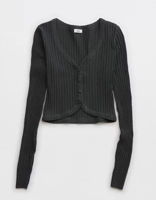 Aerie Cropped Ribbed Cardigan