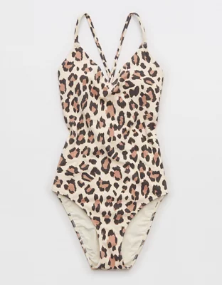 Aerie Buzzed Terry Leopard Strappy Back One Piece Swimsuit