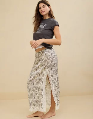 Aerie Satin Midi Skirt