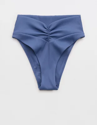 Aerie High Cut Ruched Cheeky Ribbed Bikini Bottom