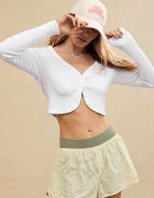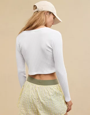 Aerie Cropped Ribbed Cardigan