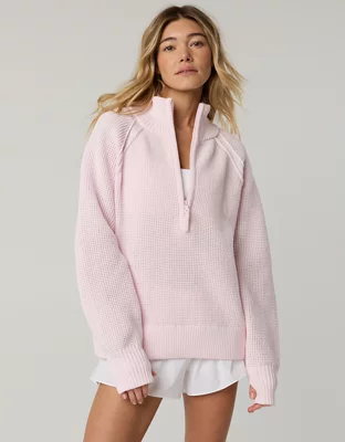 OFFLINE By Aerie Cool Down Quarter Zip Waffle Sweater