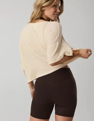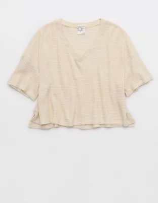 OFFLINE By Aerie Wow! Waffle V Neck Cropped Short Sleeve T-Shirt