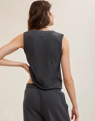 Aerie Shadow Stripe Henley Tank Top