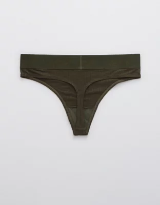 Aerie Ribbed Logo High Waisted Thong Underwear