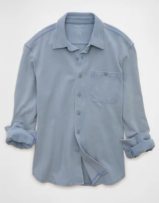 AE Relaxed Fit Knit Button-Up Shirt