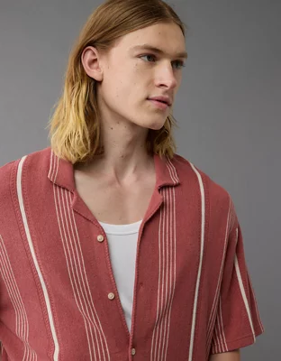 AE Weekend Striped Button-Up Sweater Polo Shirt