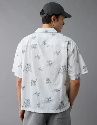 AE Poolside Linen-Blend Floral Button-Up Shirt