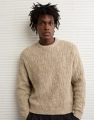 AE Cable Knit Crew Neck Sweater