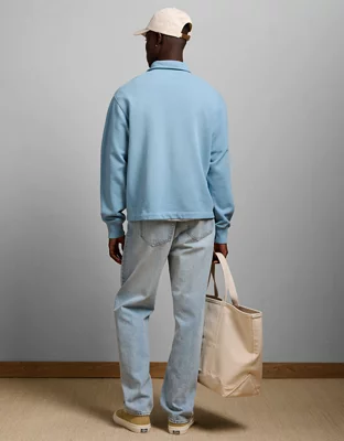 AE77 Long-Sleeve Terry Fleece Polo Shirt