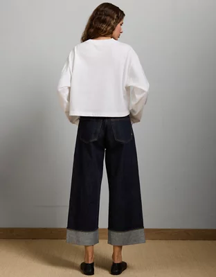 AE77 Premium Wide Crop Cuff Jean