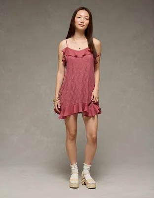 AE Lace Handkerchief Hem Ruffle Mini Dress