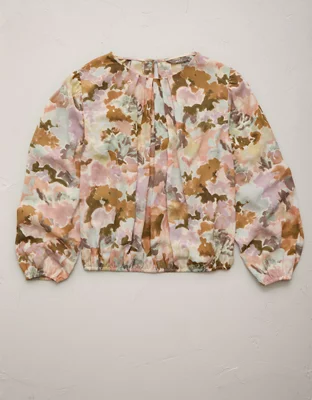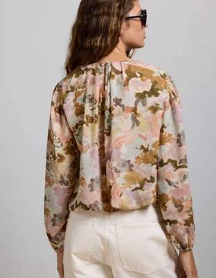 AE77 Premium Bubble-Hem Chiffon Blouse