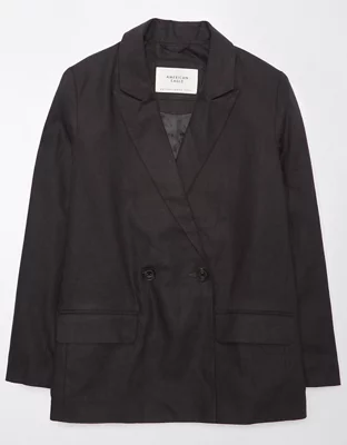 AE Linen-Blend Oversized Double Breasted Blazer