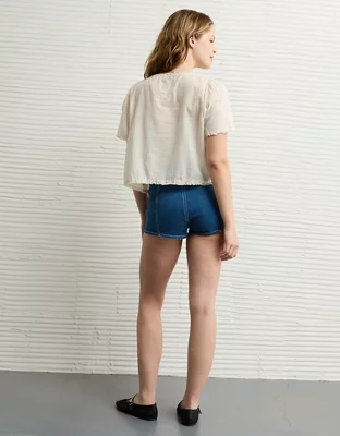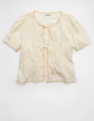 AE Short-Sleeve High Neck Tie Front Shirt