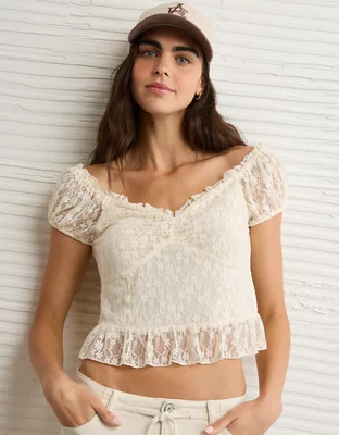 AE Short Sleeve Lace Blouse