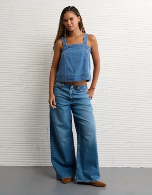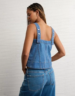 AE Square Neck Pieced Denim Tank Top
