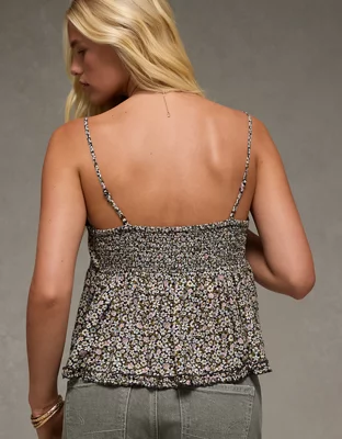 AE Tie Front Ruffle Trim Tank Top