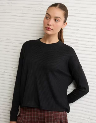 AE Long-Sleeve Waffle Plush Crew Neck Tee