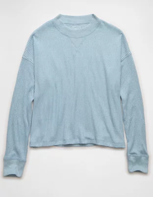 AE Long-Sleeve Waffle Plush Crew Neck Tee