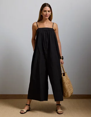 AE77 Premium Wide-Leg Cropped Poplin Jumpsuit