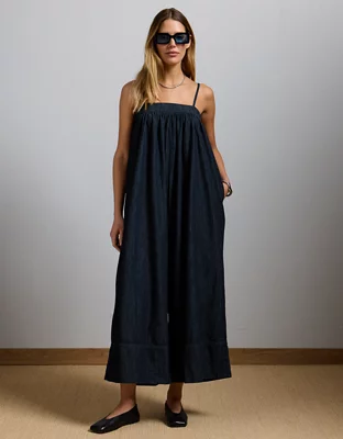 AE77 Premium Wide-Leg Denim Jumpsuit