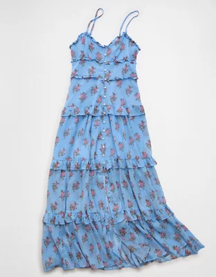 AE Button-Up Ruffle Midi Dress