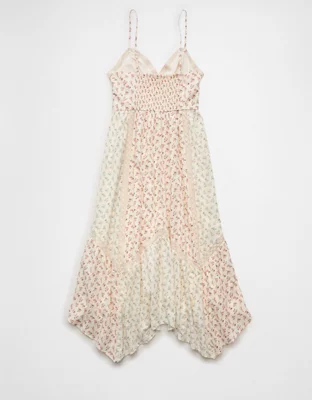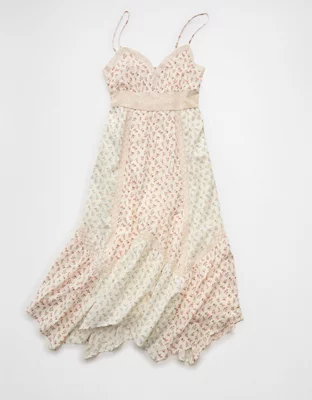 AE V-Neck Lace Inset Hanky Hem Midi Dress