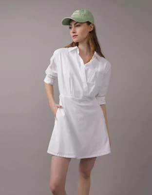 AE Long-Sleeve Faux Wrap Mini Shirt Dress