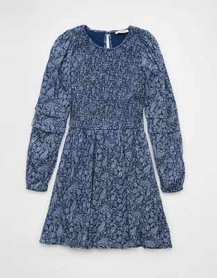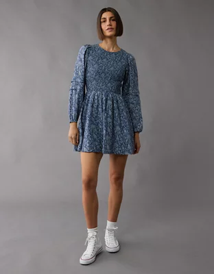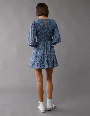 AE Long-Sleeve High Neck Floral Mini Dress
