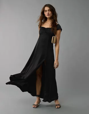 AE Satin Sweetheart Off-The-Shoulder Maxi Dress