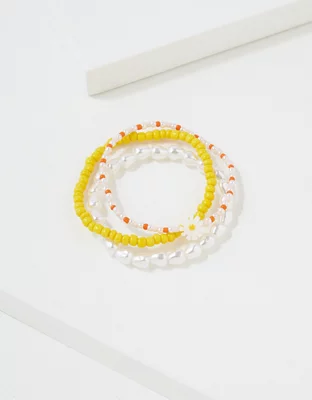 AEO Yellow + Orange Pearl Beaded Bracelet 3-Pack